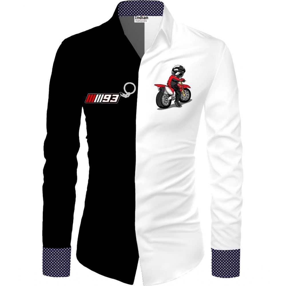 Men's Casual Floral Printed Cotton Blend Unstitched Shirt Fabric 1.6 Mtrs (White-Black)