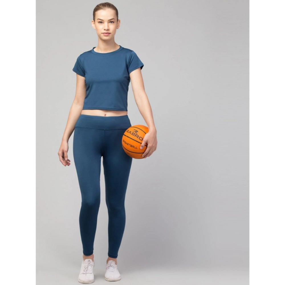 Women's Polyester Solid Ankle Length High-Rise Tights (Teal)