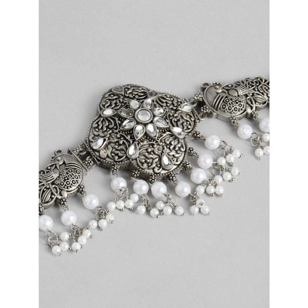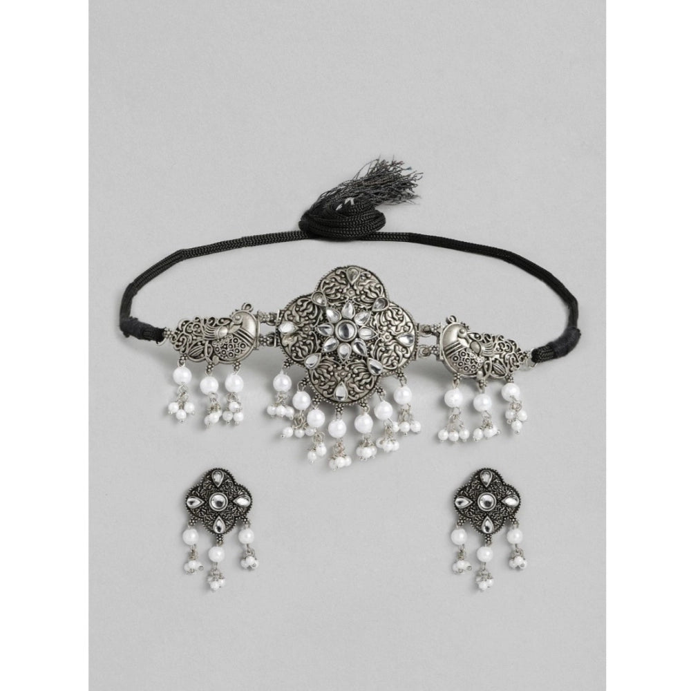 Women's Rose Gold Plated Alloy Necklace & Earings Set (Silver & White)