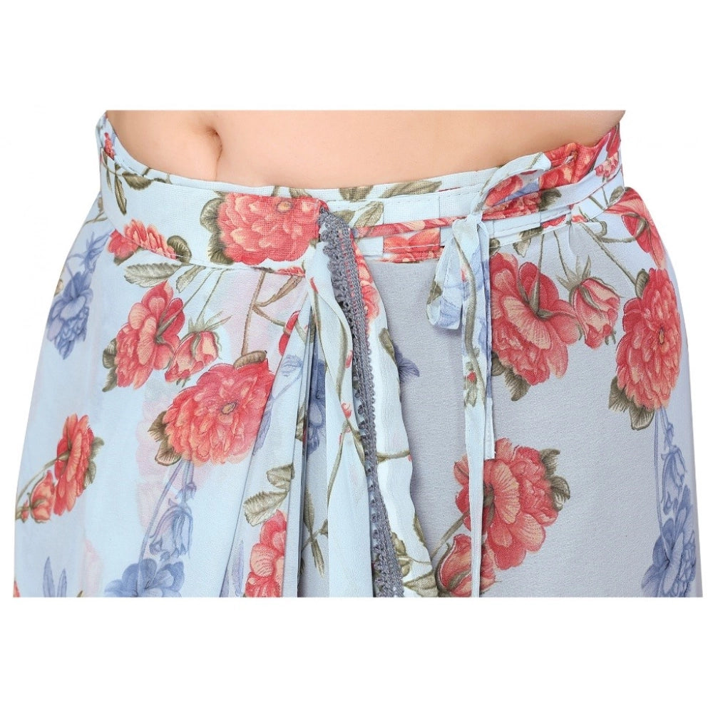 Women's Small Lace Georgette Printed Ready-to-Wear Saree With Unstitched Blouse 5.5 Mtr (Sky Blue)