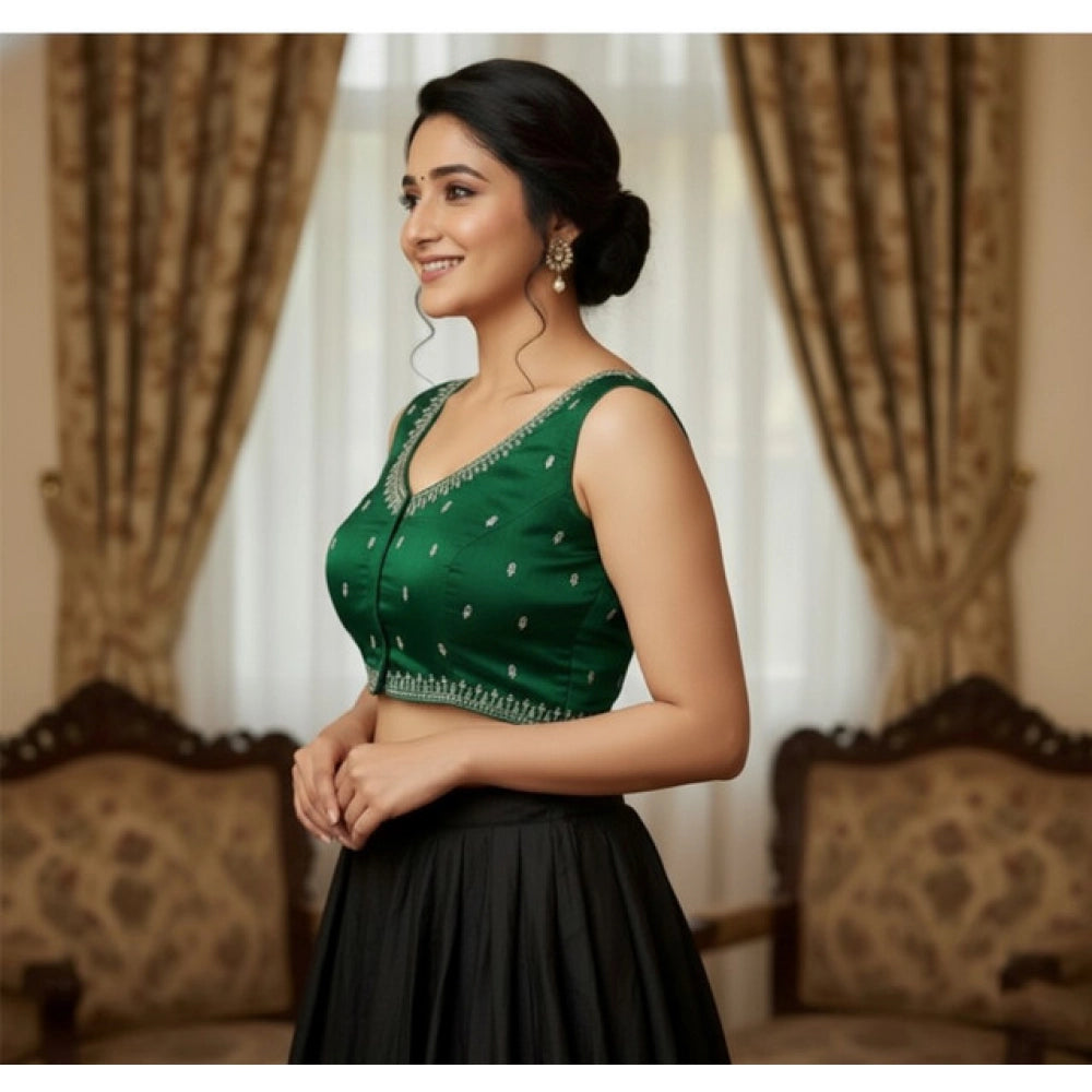 Women's Zimmi Choo Sequin Work V-Neck Padded Blouse (Green 38 Ready (Self Alterable 36–40)